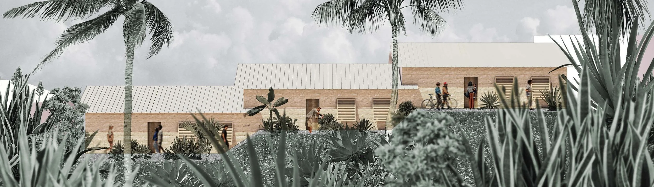 Climate-adaptive housing that protects occupants and improves neighborhoods; community benefit or resident shared use built into the proposal; site planning, landscaping, and material strategies that minimize fire risk; resilience consideration at the building, site, and community level.